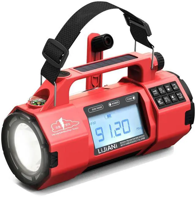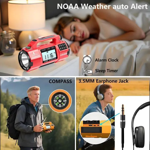 EMERGENCY ALERTS: Auto-scans NOAA weather channels and provides instant emergency notifications with comprehensive AM/FM/SW/WB radio coverage through telescopic antenna ^^