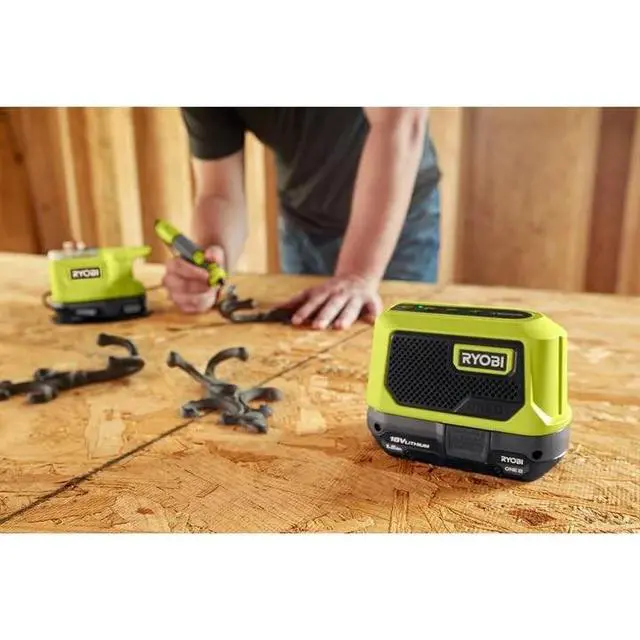 The Ryobi RBTM18-0 18V ONE+ wireless Bluetooth mini speaker is ideal for use at home or on the go thanks to its light weight and compact size. The 5W speaker provides clear, crisp music at a variety of volumes. Built-in Bluetooth 4.2 wireless technology allows for ultimate versatility with the ability to stream full audio over long distances up to 25m. Play music for up to 44 hours with a Ryobi RB18L50 ONE+ battery. This item is a bare tool (without battery or charger), which is a great way to expand your ONE+ collection.