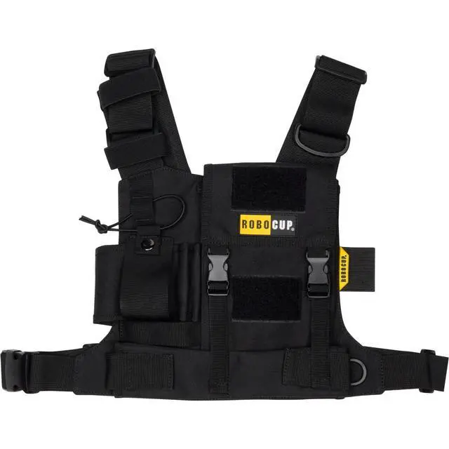^^ Multi-Functional Tool Harness Designed for efficiency, it includes a D-ring for keys or carabiners, two pen holders, and a hidden belt strap compartment for a multi-tool or flashlight. ^^ Secure Fit for Radios & Devices Holds full-size handheld ham radios, GPS devices, or smartphones, secured with a bungee cinch cord and adjustable width strap for a snug, reliable fit.