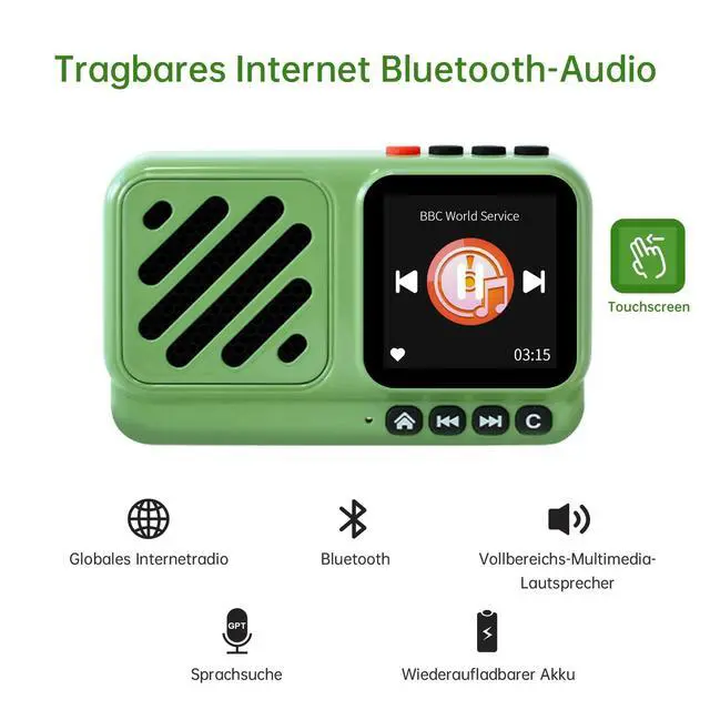 Surprise features: equipped with GPT, you can directly voice on-demand machine in all radio stations and podcasts, but also can support the independent addition of radio by entering a valid URL directly on the radio, support all audio formats such as mp3, AAC, m3u8, etc ^^