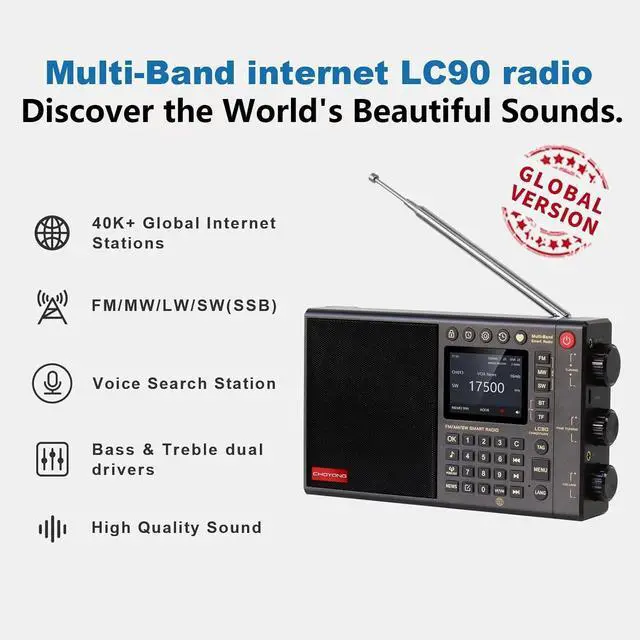 [Gift with purchase: ] Storage bag, Charger, Battery removal tool. ^^ [40k INTERNET RADIOS]Listen to more than 40, 000 internet radio stations from all over the world via 2.4 WiFi or SIM card, with clarity and no noise, categorized by continent, country, province, city, station type and popularity. Connect to the Internet and listen to tens of thousands of radio stations for free, and bookmark your favorite stations with one click. ^^ [Multi-Band PORTABLE RADIO]Listen traditional radios via FM, LW, MW or SW (SSB), It can adjust the reception bandwidth, can display signal strength and SNR, can connect to an external antenna. ^^ [ADDABLE STATIONS]You can add your favorite radio stations by entering a valid URL directly on the radio, support all audio formats such as mp3, AAC, m3u8, etc. ^^ [EASY TO SET UP]Very easy to add wi-fi network or SIM card to connect internet, and easy to usebecause it has lots of shortcuts including: FM/SW/MW, favorites, add station, station categorization, voice search, fast forward, pause and more! ^^ [TWO-WAY