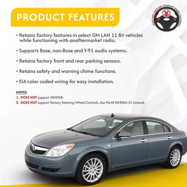 Supports Bose, non-Bose and Y-91 audio systems ^^ Retains factory front and rear parking sensors ^^ Retains safety and warning chime functions ^^ Adjustable Chime Volume ^^ EIA color coded wiring for easy installation
