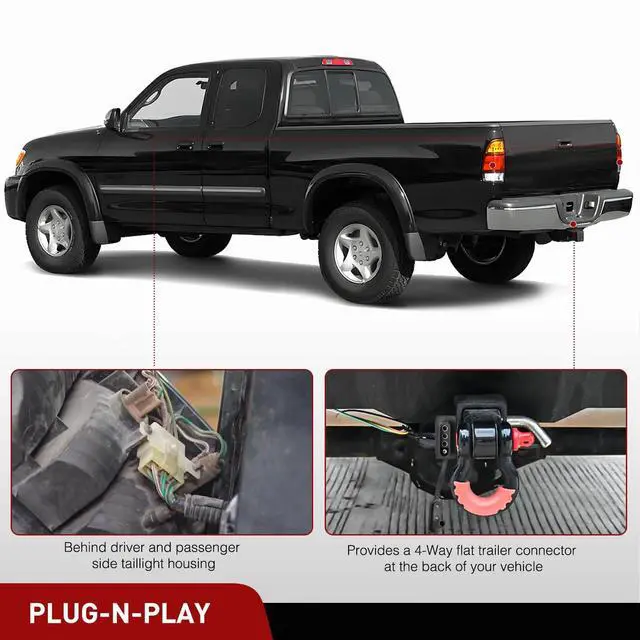 VEHICLE-SPECIFIC: This vehicle-trailer wiring harness is designed for 1989-1995 Toyota Pickup (Except T-100 or Tacoma); 1995-2004 Toyota Tacoma. OEM-compatible connectors to plug into your vehicle's wiring harness, located behind the driver and passenger side taillight housing.