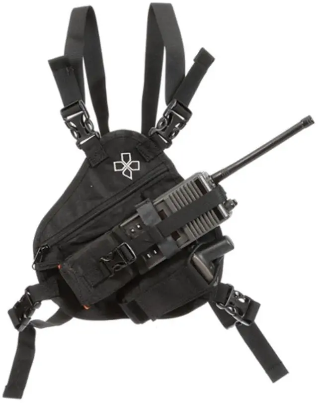 Ergonomic Radio Chest Harness ^^ Radio chest harness wears well with big backpacks for technical fieldwork. ^^ Multiple Radio Holsters ^^ Main and secondary radio holsters are adjustable to fit radios as large as a BK Radio or electronics as small as smartphones and other electronics. ^^ Plenty Of Pockets ^^ Main compartment is large enough for a notepad, smartphone, and other small essentials, and theres an external sleeve sized for writing tools. ^^ Fully Adjustable & Backpack-Friendly Design ^^ Fully adjustable straps stay out of the way when paired with big backpacks, and the Harness Converter Kit (sold separately) connects directly to Coaxsher backpacks.
