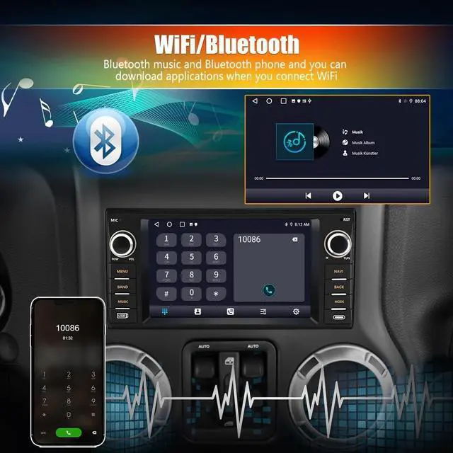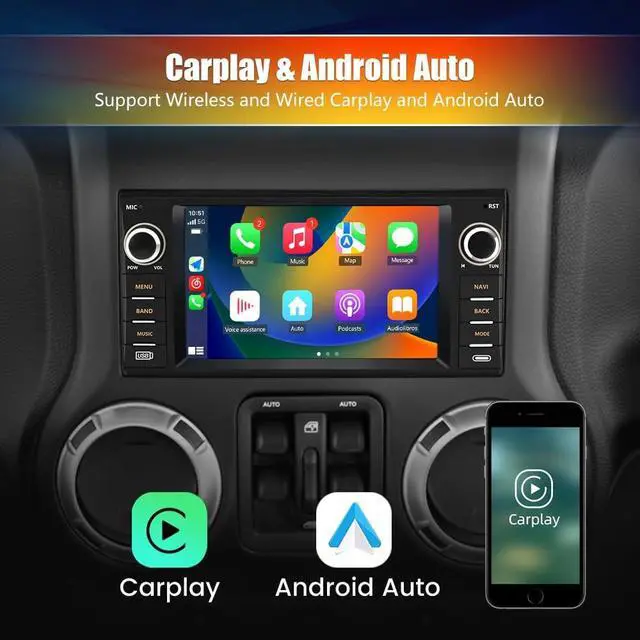 Applicable Car ModelsFor Jeep Wrangler/Unlimited 2007-2018; For Jeep Compass 2009-2016; For Jeep Patriot 2009-2016; For Jeep Grand Cherokee 2005-2011; For Jeep Liberty 2008-2011; For Jeep Commander 2008-2011; For Chrysler Sebring 2007-2010; For Town&Country 2007-2010; For Dodge Grand Caravan 2011-2014; For Dodge Charger 2008-2010; For Dodge Ram Pickup 1500/2500/3500 2009-2012. ^^ Android 13 SystemAndroid 13 operating system, ensure smooth and fast operation. Provide you with a more comfortable experience and convenient operation. ^^ Wireless CarPlay & Android AutoYou can choose wired connection or wireless connection to CarPlay or Android Auto.