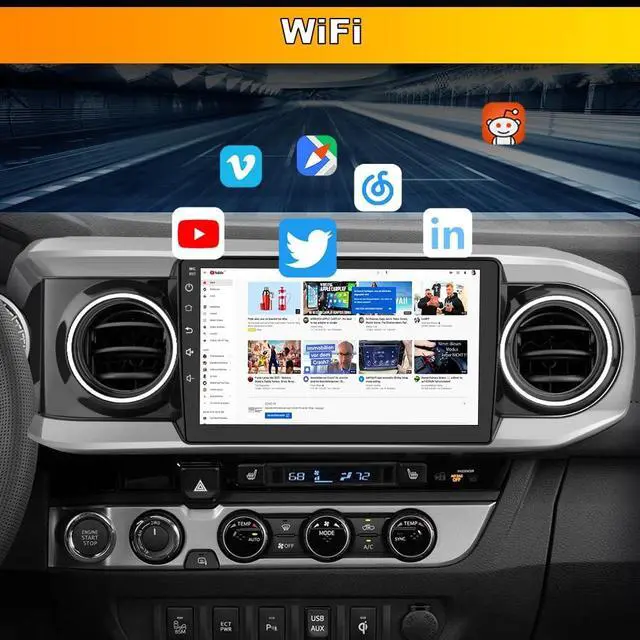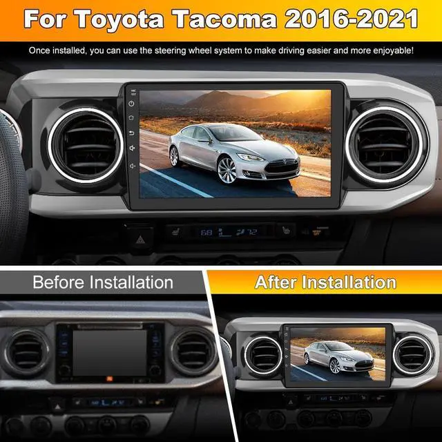 Applicable Car ModelsFor Toyota Tacoma 2016 2017 2018 2019 2020 2021 3rd Gen Tacoma. ^^ Android 13 SystemAndroid 13 operating system, ensure smooth and fast operation. Provide you with a more comfortable experience and convenient operation. ^^ Wireless Carplay & Android AutoYou can choose wired connection or wireless connection to Carplay or Android Auto. By connecting your iPhone or Android phones, you can access mobile phone address book, notifaction, message, map navigation, music and so on. ^^ GPS Navigation & WiFi ConnectSupport online maps, after connected to WiFi, you can use GPS Navigation at anywhere.