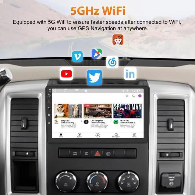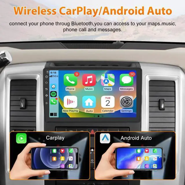Applicable Car ModelsFit for Dodge Ram 1500 2500 3500 2009 2010 2011 2012. ^^ 5G WiFi & GPS NavigationThe supports fast and reliable 5G WiFi network, online maps. It's ideal for streaming music, downloading maps, and accessing online services without interruption, making your driving experience more connected and entertaining. With the high-speed connectivity, your navigation system updates in real-time, providing accurate and up-to-date route information. This helps you avoid traffic jams and reach your destination faster and more efficiently. ^^ Bluetooth Connectivity Fast matching Bluetooth connection, built-in microphone to answer or make calls, let your hands focus on the steering wheel.