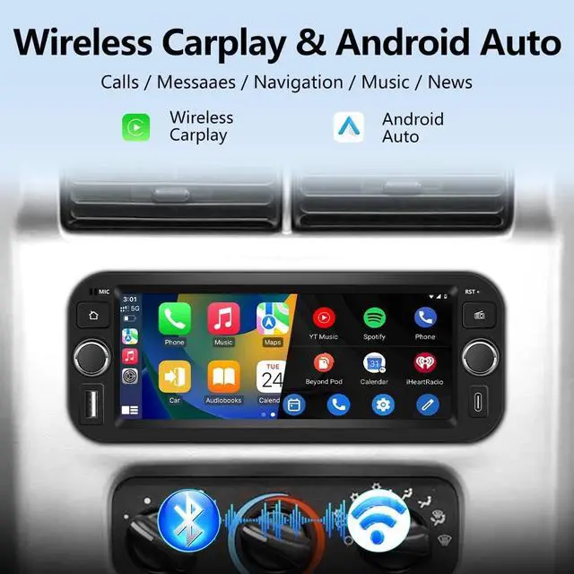 Applicable Car ModelsFor Dodge RAM 2002-2006, for Jeep Wrangler 2003-2006, for Jeep Grand Cherokee 1999-2004, Chrysler 300 2002-2004. ^^ Android 13 SystemAndroid 13 operating system, ensure smooth and fast operation. Provide you with a more comfortable experience and convenient operation. ^^ Wireless Carplay & Android AutoYou can choose wired connection or wireless connection to Carplay or Android Auto. By connecting your iPhone or Android phones, you can access mobile phone address book, notifaction, message, map navigation, music and so on. ^^ GPS Navigation & WiFi ConnectSupport online maps, after connected to WiFi, you can use GPS Navigation at anywhere.
