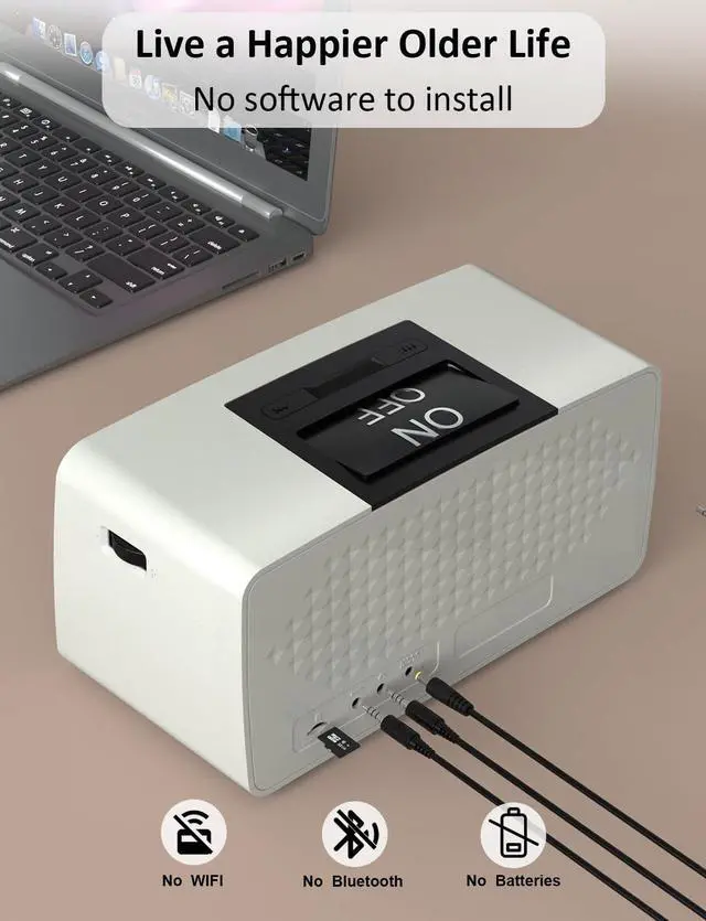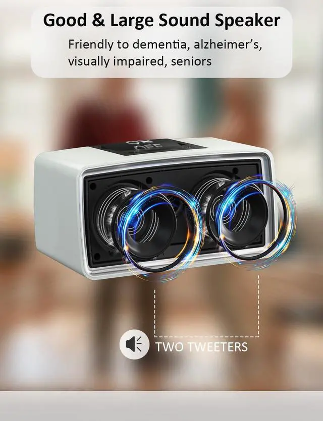 ^^ Large capacity: This dementia radio speaker has 32GB memory capacity, nearly 5000 songs or audio books you can download. 1 minute can upload to hundred songs! Listen to music to relieve the anxiety in their older life. ^^
