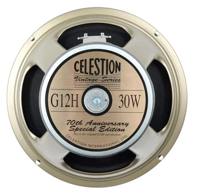 Unit weight: 4.7 kg / 10.4 lb ^^^^ ^^^^ Originally re-released to celebrate our 70th Anniversary, the G12H guitar speaker remains hugely popular with players looking to recreate the classic sounds of 60s and 70s rock. With a strong aggressive low-end and powerful low-mids the G12H penetrates any mix with an attacking upper mid-range and an ice-cool top- end. ^^^^ ^^^^ Used singly or in quartets it provides serious attitude to soft amp tones easily cutting through loud stage levels for chord work and imparting a hard edge to single notes. A favourite in the boutique amplifier market the G12H guitar speaker is often used on its own or paired with a Celestion Blue or Gold for a full-bodied sound that adds ceramic attitude to the chime of an Alnico speaker.