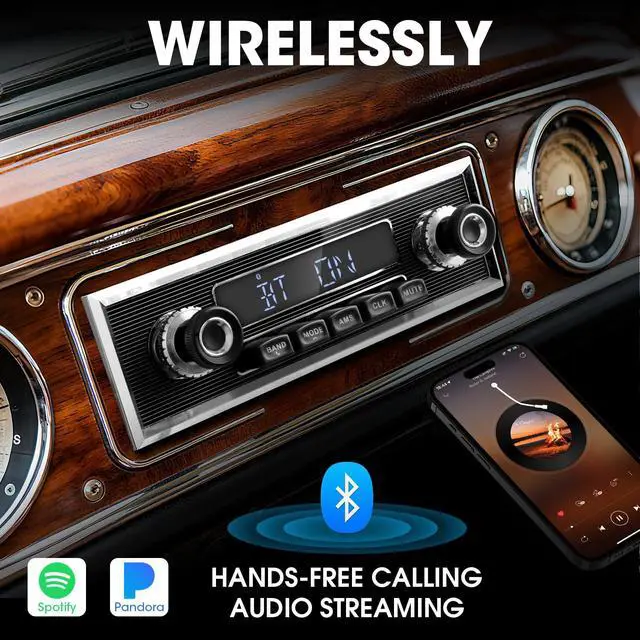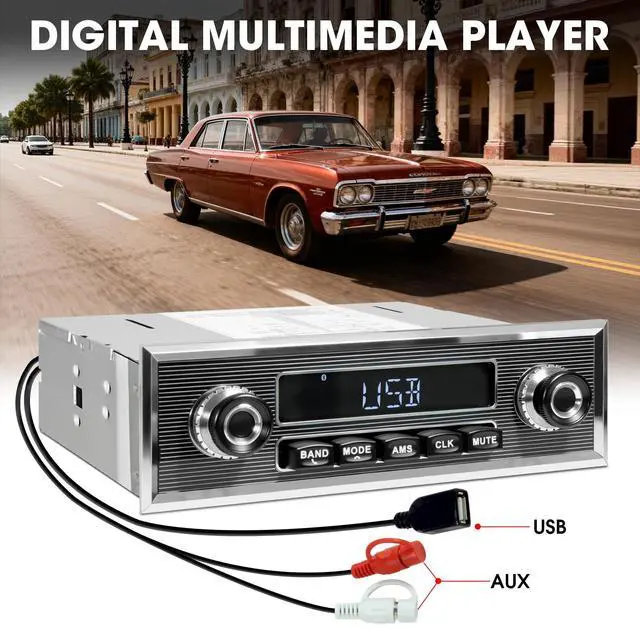 Player Options: This classic car stereo features aux-in and USB drive support, allowing the MP3, WMA, and FLAC music files playing ^^ AM FM Radio with