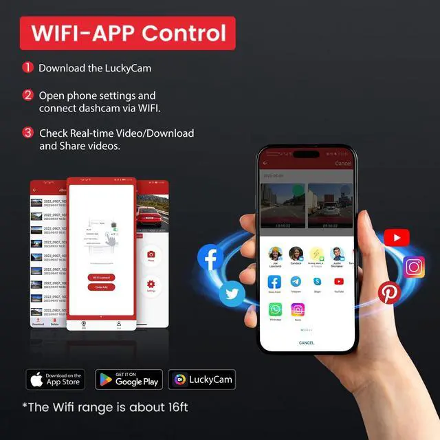 Enjoy flexible playback and instant sharing with family or friendsall without requiring a constant WiFi connection. ^^ Uncompromising 4K Clarity Engineered with a premium CMOS sensor and an ultra-wide f/ 1.6 aperture, this 4K dash cam delivers exceptionally sharp footage at 38402160P/30fps. Enhanced with WDR (Wide Dynamic Range) technology, it automatically balances exposure to capture critical details like license plates and street signsday or night. Drive with confidence, knowing every journey is recorded in crisp, reliable detail. ^^ Auto-Overwrite & Incident Protection With loop recording, this car camera continuously saves new footage while overwriting the oldest files when the memory is full.