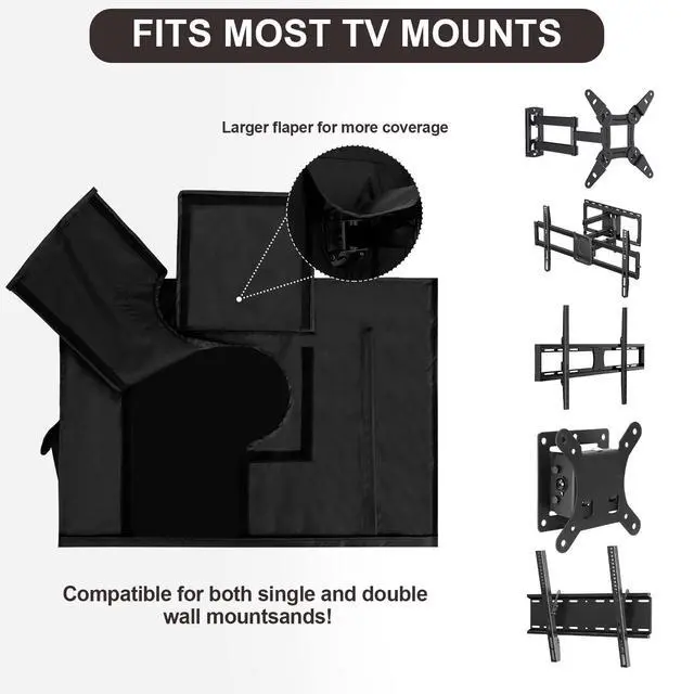 ^^ FITS VARIOUS MOUNTS: The outdoor TV protector's back features a large rounded opening that can be adapted to many types of mounts, such as double wall, single wall, ceiling mounts, tilting TV mount. And velcro with use, super easy to install, can be put on and off by one person in seconds! ^^