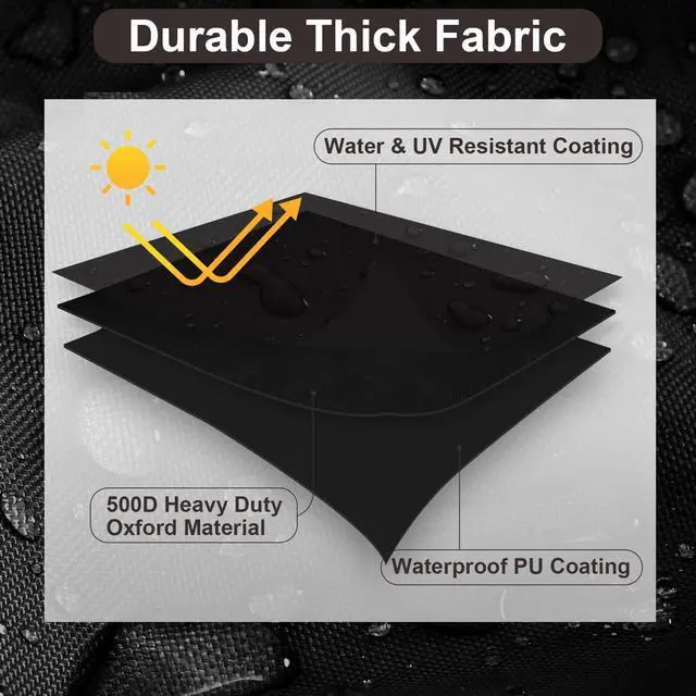 DURABLE MATEREIAL: The outdoor TV enclosure made with durable 500D oxford fabric that added PU coating on the back, which makes the cover UV-resistant, scratch proof, and waterproof. The yarn-dyed technology keeps the color away from fading.