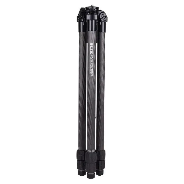 If you are looking for a simple-to-use but very lightweight tripod that can handle some heavy camera and lens combinations than the SLIK Pro cf-833 is for you. This tripod is 40% lighter than aluminum and super tough thanks to the 8-layer carbon fiber. When fully extended it reaches a height of 67.3 inches and folds down to a compact 23.6 inches. Though lightweight ( 3.4 lbs) it is capable of handling up to 15.4 lbs. Use this tripod with professional camera bodies and/or heavy lenses. The three leg sections are secured and loosened with twist locks.