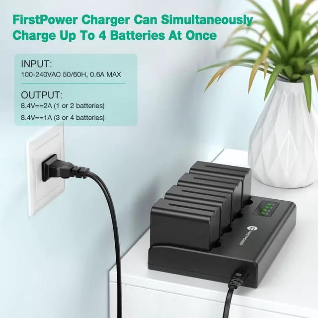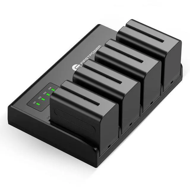 FirstPower 4 Pack NP-F970 Batteries and 4-Channel Charger Compatible with Sony NP F970, F960, F950, F930, F770, F750, F570, F550, F530, F330 and Sony Handycams, Field Monitor, Video Light