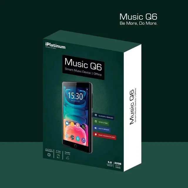 Discover the Samvix iPlatinum Q6 Kosher MP3 Player with USB Type-C, designed for on-the-go music lovers. With 32GB of built-in memory expandable up to 128GB via SD card, it offers up to 100 hours of battery life and supports 20+ languages. This compact MP3 player features a built-in recording system, perfect for lectures and meetings. The 4" IPS touch screen ensures visibility even in bright sunlight, making it easy to carry. The iPlatinum Q6 offers various functions, including apps for Notes, Books, Prayers, a Clock with Timer, Stopwatch, Alarm, Camera, Games, a Hebrew Calendar, and Calculator.