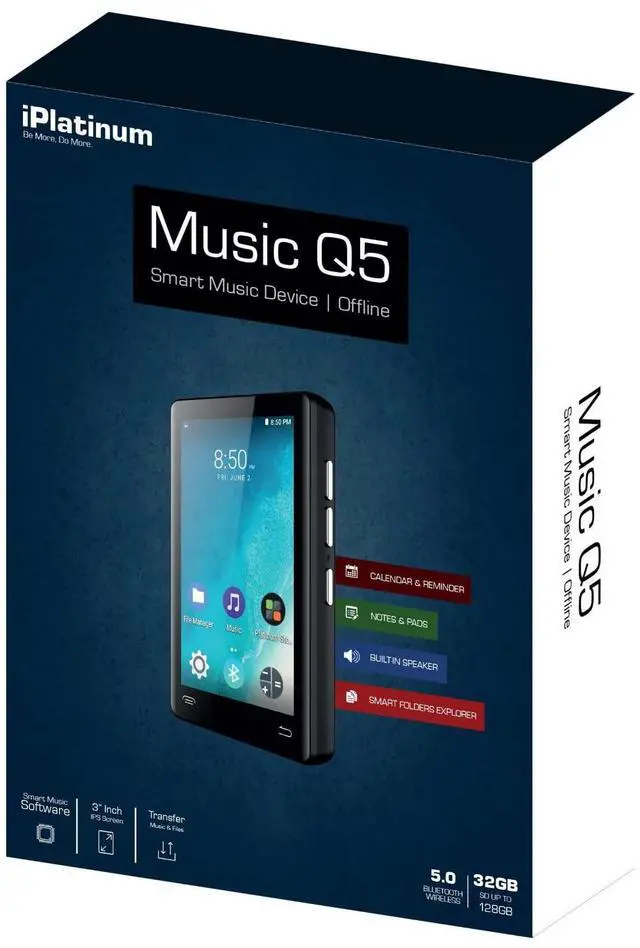 The Samvix iPlatinum Q5 Kosher MP3 Player with USB Type-C Cable has a built-in 32GB memory that can be expanded up to 128GB via an SD Card Slot. Its battery can last up to 100 hours and it supports 20+ languages. The LCD touchscreen makes it easy to see the display, even in bright sunlight. It has a variety of functions such as apps for Books and Prayers, a Clock with a Timer, a Stopwatch, and Alarm functions. iPlatinum Q5 Kosher MP3 Player has built-in recording pickup holes and an A-B recording system, making it easy to record spoken word, audio, and music.