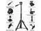 The total weight of the device should not exceed 8.8 pounds. It can withstand a 6.6 -pound camera when fully deployed. It supports most camera/mobile devices, including digital cameras, DSLR, SLR, action cameras, GoPro, webcams, binoculars, ring light cameras, Canon, Nikon, Olympus, iPhone, iPhone 13 Pro Max, iPhone 12 Pro Max.