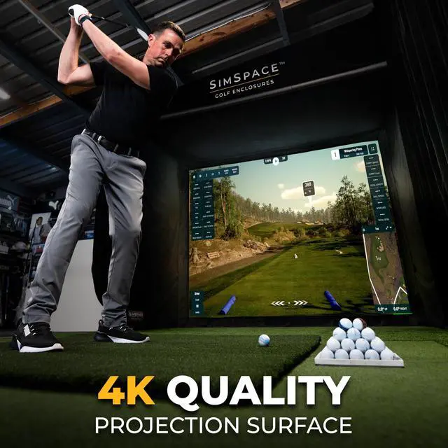 Introducing the Elite Impact Screen by SimSpace, the epitome of sophistication in golf aids, designed to elevate your indoor golf game to unparalleled levels. This premium display screen is a must-have for golf enthusiasts seeking to transform their space into a state-of-the-art golf simulator for home use. Crafted with precision and attention to detail, the Elite Impact Screen is an indispensable addition to your golf training aids collection, ensuring a seamless and immersive experience. Constructed from high-quality polyester, this single-layer projection screen boasts reinforced stitching and high-density woven fabric, ensuring durability and longevity.