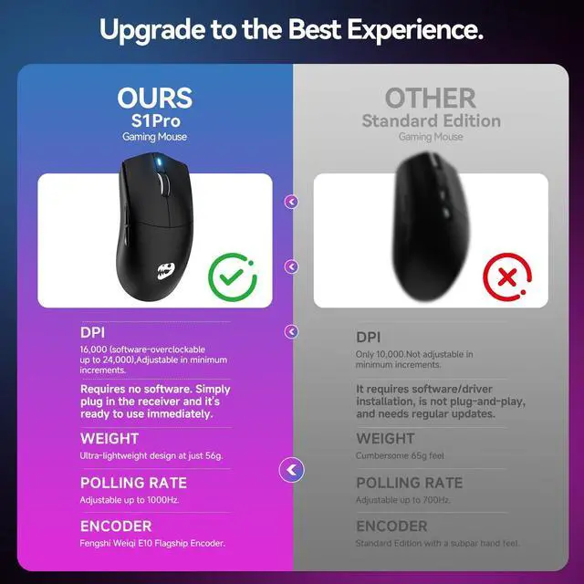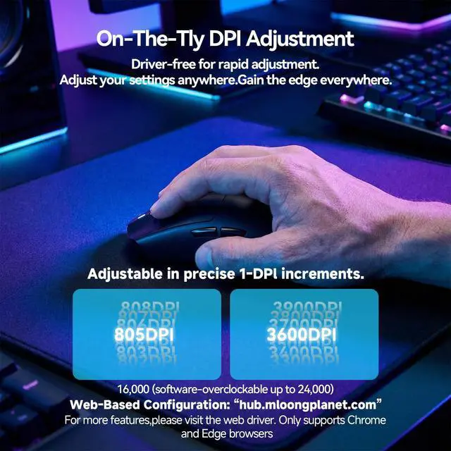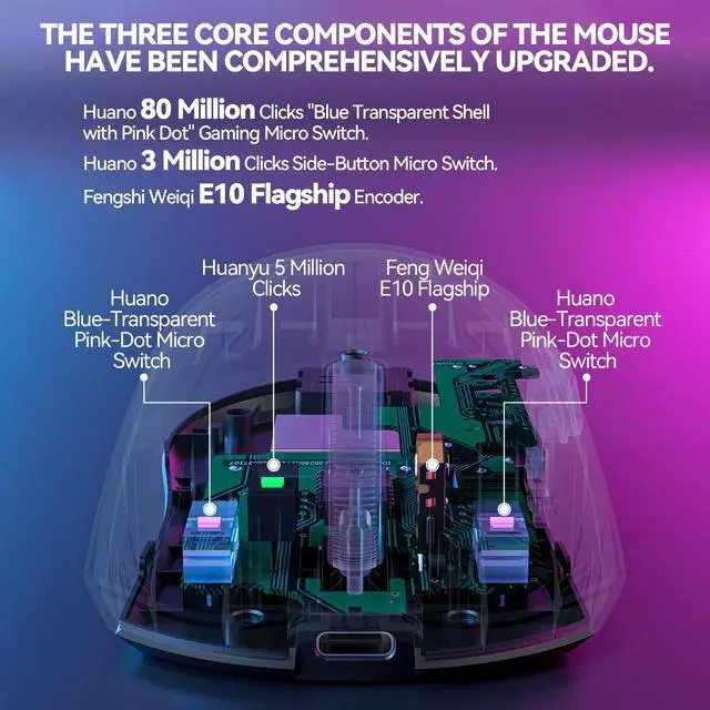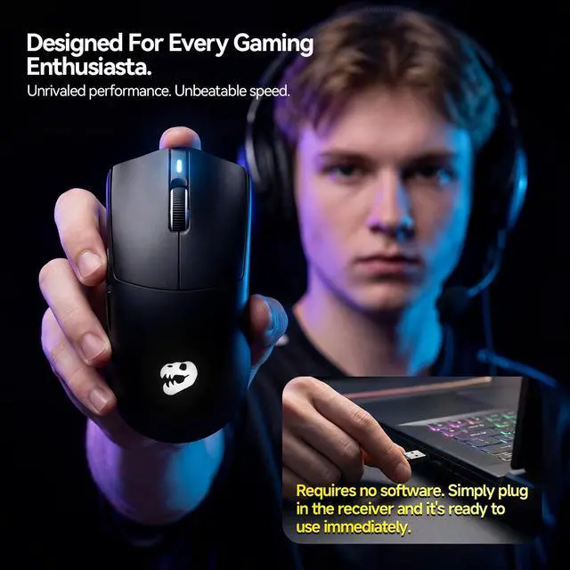 Ultra-lightweight, ergonomic design at best-in-class 47g ^^ Dynamic accuracy with 26k DPI/650 IPS ( 16.5 m/s) optical sensor ^^ Pre-tensioned buttons for fast, satisfying clicks ^^ TITAN Switch Optical for a tactile feel with optical speed ^^ Long-lasting switch durability - 100M click lifecycle ^^ Lag-free 2.4GH z wireless & Bluetooth dual connectivity ^^ Up to 120 hours of battery life ^^ Hybrid skate design for smooth mouse movements ^^ 6 programmable buttons including side DPI button ^^ Lightweight and flexible PhantomFlex USB-C cable