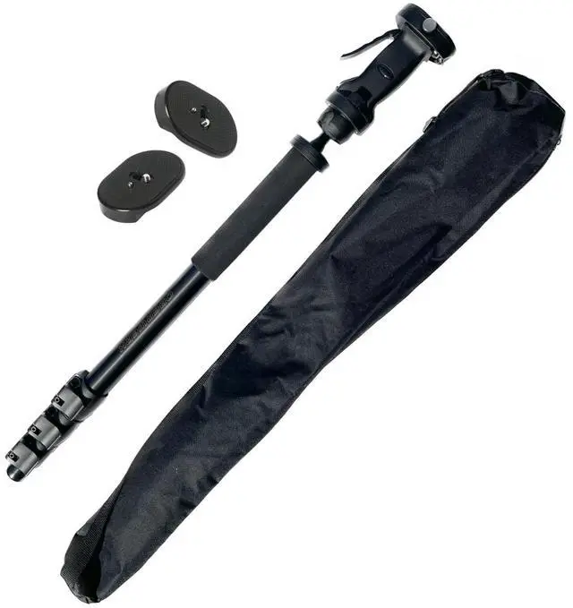 But what truly sets this monopod apart is its innovative grip-action ball head. With just a squeeze and release of the lever, you can tilt your binoculars or camera from horizon to zenith, locking them securely into place for the perfect shot or view. Convenience is at the forefront of this design, with 2 quick-release plates included and additional plates available for swift swapping between devices such as DSLRs, spotting scopes, or even laser levels. A carrying case rounds out the package, adding an extra layer of convenience for photographers and outdoor enthusiasts on the move.