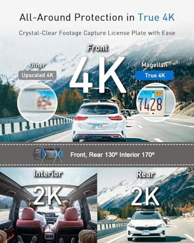 Recording: Records in front at 4K Ultra HD (3840 x 2160P) and 2K QHD (2560 x 1440P) for interior and rear views; 170 wide-angle captures every detail. ^^ Dual STARVIS 2 Sensors with