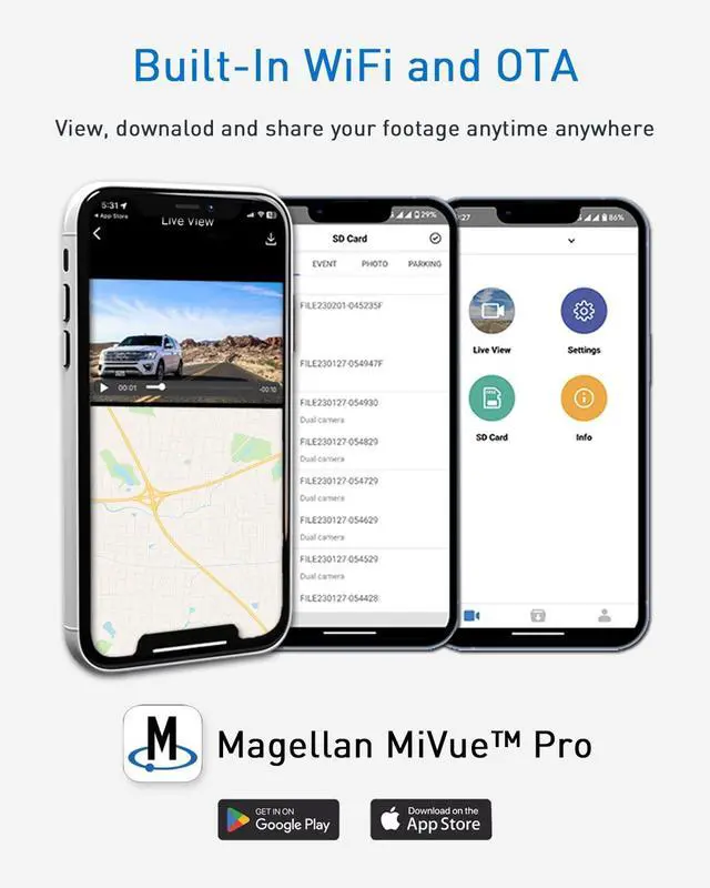 Control & GPS: Get real-time viewing, video download, and settings; GPS logs speed, route, and direction in each recording through the Magellan Mivue DR50 app for iOS & Android. ^^ Secure Mounting & Ready to