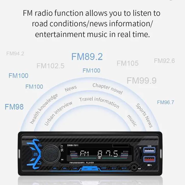 Upgrade your driving experience with our 7-inch Single Din car radio, featuring Bluetooth for hands-free calls and wireless music streaming, voice assistant integration, and a powerful 60W output. Enjoy your favorite tunes through USB, TF card, or AUX input, and tune in to FM radio with a wide frequency range of 87.5 -108MHz. The stereo includes a steering wheel controller for safe, easy operation and supports subwoofer connection via RCA outputs. Additional features include customizable EQ settings, 2.1A fast charging, and power-off memory, all in a sleek, standard U.