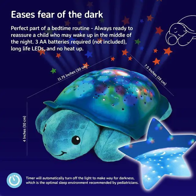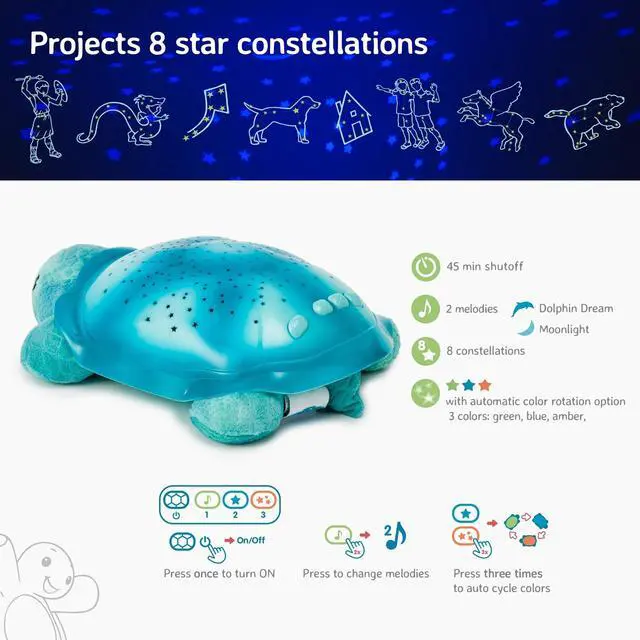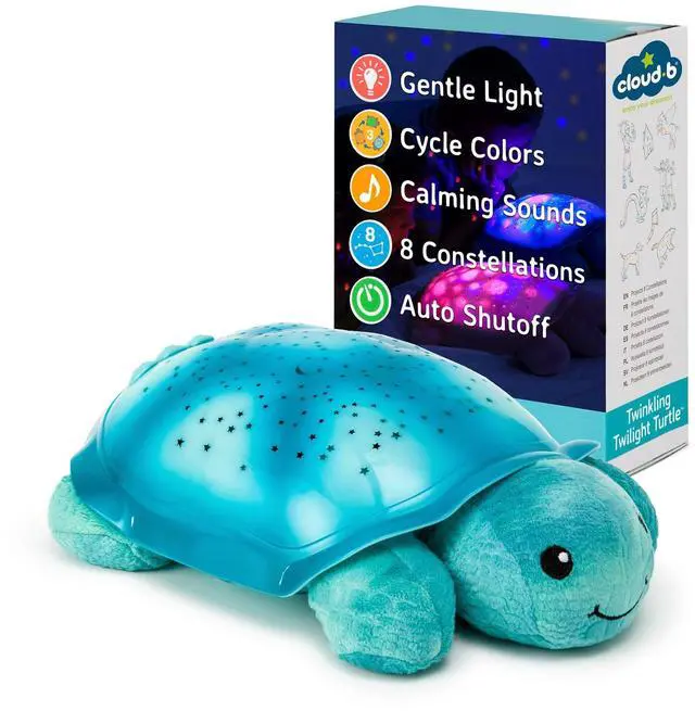 Cloud b Comforting Nightlight Star Projector w/ Soothing Sounds ^^ Gentle Brightness ^^ 3 Colors ^^ Auto-Shutoff ^^ Twinkling Twilight Turtle Aqua