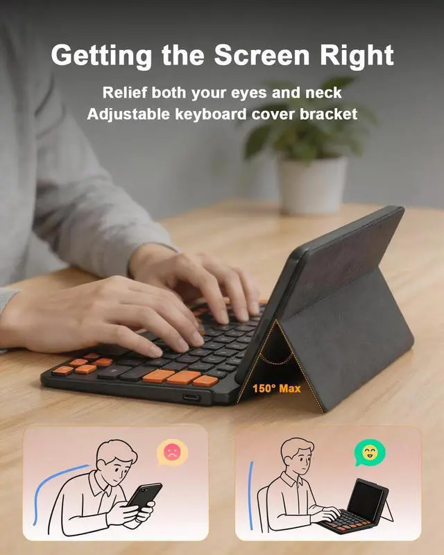 Whether youre typing, viewing, or reading, simply lock in the ideal angle for ergonomic comfort. This travel-ready design delivers the premium protection and stability youd expect from a dedicated iphone keyboardnow tailored for your mini keyboard, ensuring reliable performance wherever you go. ^^ Ultra-Compact & Truly Pocket-Sized Portability Experience unparalleled mobility. The iphone 17 keyboard's handheld design and lightweight build allow it to slip into a jacket pocket or small bag effortlessly. The ultimate travel-ready companion for business trips, campus life, or commuting. ^^ Universal Smart Compatibility - Works Instantly Get set up in seconds.