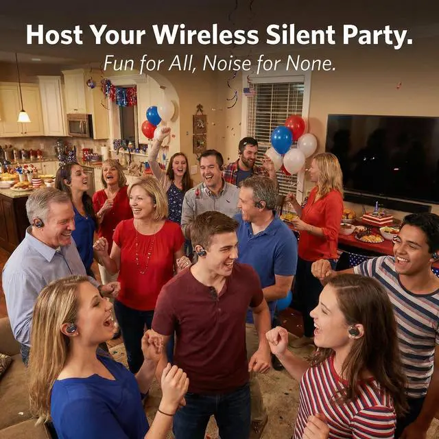 Your Personal Wireless Audio Hub: Perfect for Shared PC Entertainment & Silent Gatherings: Transform your computer into a wireless entertainment center for two! Plug the included U7 USB transmitter into any PC or laptop (Windows/Mac)instantly create a private, lag-free audio zone. Watch movies, play co-op games, or stream shows with a partner using dual headphones synced to one source.Beyond desktops, it's your ticket to hosting Silent Parties at home or outdoorsideal for apartments, dorm movie nights, backyard gatherings, or holiday events without disturbing neighbors or sleeping kids.