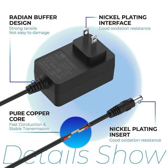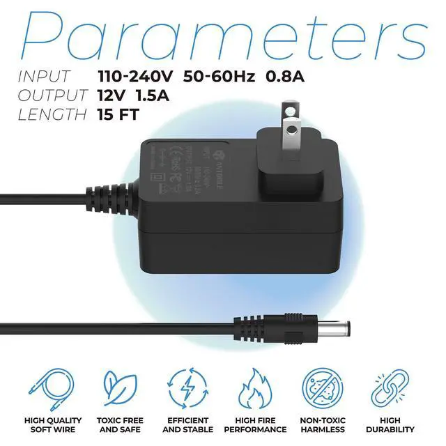 SpecificationsCord for Char-Griller power supply Output: 12V, 1.5A; Input: 110-240V 50/60hz 0.8A. Griller power supply for Char-Griller tend to be subject to a lot of abuse. The power adapter may be cut, scratched, internally damaged, or the prongs may be broken. Damaged power cords should be replaced immediately to avoid electric shock.