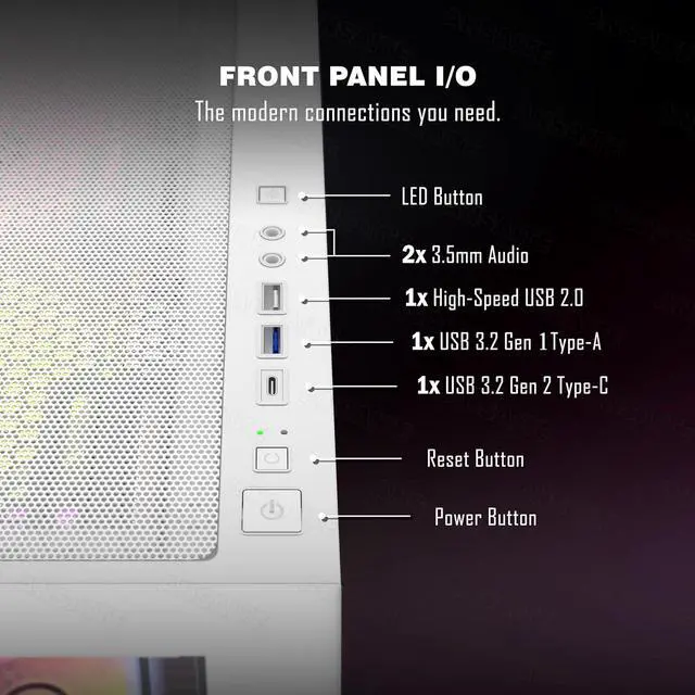 [Upgrade High Speed I/O Panel]ANSAITE PC case maximizes external interfaces for enhanced functionality, featuring USB3.2 Gen 2 TYPE-C high-speed ports to connect various new-standard devices. Enjoy faster transfer rates and reduced waiting time, along with superior power delivery performance. Fully equipped with Reset button and AUDIO interface to meet diverse daily office and gaming needs.