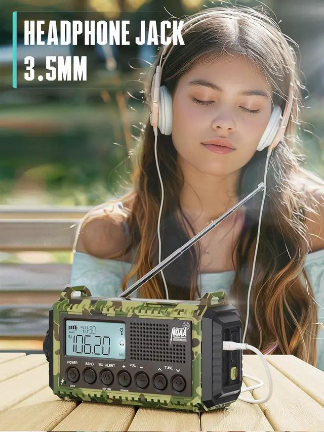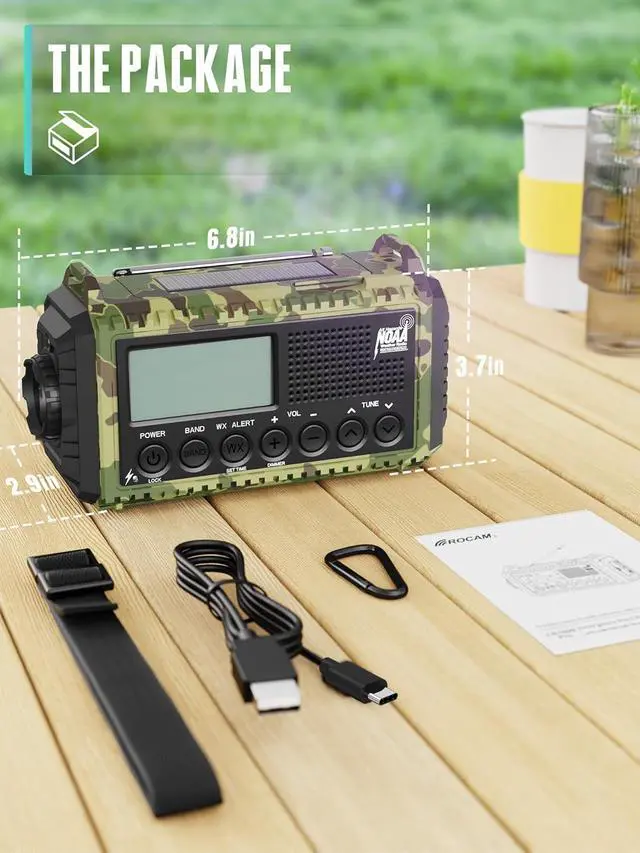 5 Charging Options+ Rechargeable Battery - This hand crank radio with ultra-long battery life offers 5 power options. You can charge it via USB Type-C, use the hand crank, or rely on solar power. The NOAA Weather radio can also charge smart devices, tablets, or phones anytime. When other power sources aren't available, you can use 3 AAA batteries.At home or outdoors, you'll never have to worry about running out of power.