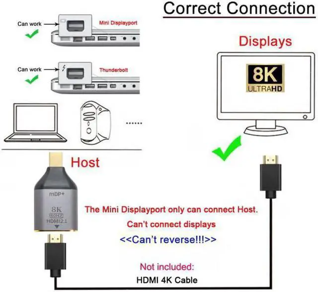 This is a 8K Mini DisplayPort to HDMI adapter, Don t support HDMI to Mini DP. It is not Bi-directional.