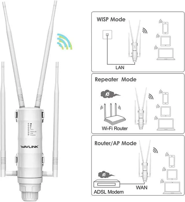 Multi Operation ModesSupport Access Point (AP), Repeater Mode, Router Mode, WISP Mode. 1xWAN 1000Mbps, 1xLAN 1000Mbps, Support 3 LEDs Wireless Signal Strength.
