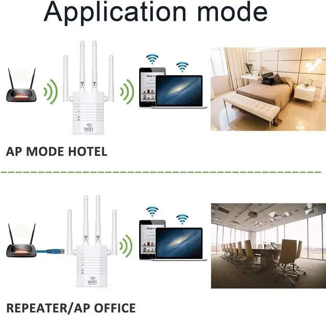 [Repeater / AP Mode / 2 Ethernet Ports]: Repeater Mode is for extending WiFi coverage of an existing wireless network. AP Mode is for covering a wired network to a wireless network. The two Ethernet ports and 4 External Antennas to achieve the best performance, being able to connect to any wired Ethernet device such as smart TV, desktop and so on while boosting your existing WiFi coverage.