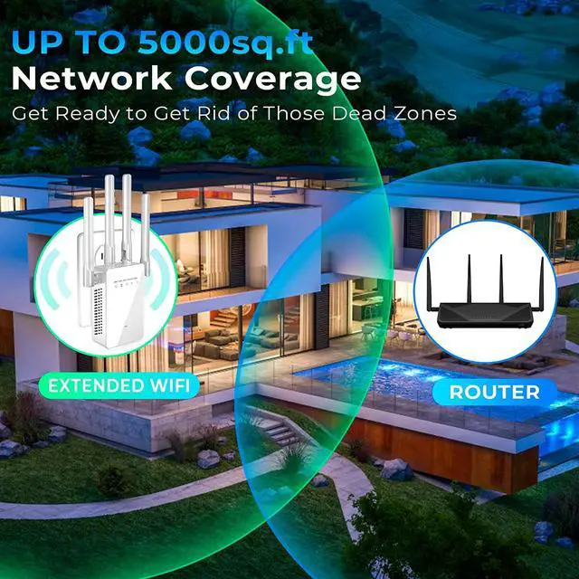 High Gain External Antennas: WiFi booster extender penetrates walls and floors with 4 antennas, extends your internet wireless network to every corner of your house, and beyond.