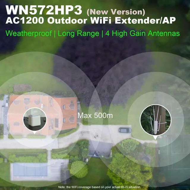 Latest 802.11AC Standard Dual Band 2.4GH z + 5GHz Outdoor Access Point-This WN572HP3 Outdoor Access Point supports the latest 802.11AC WiFi standard, which is incredibly 6 times faster than 802.11 N. A Dual band outdoor WiFi antenna can expand your existing wireless network at speed up to 2.4GH z at 300Mbps plus 5GHz at 867Mbps With triple chips MTK 7621DA + 7603E + 7613B for more stable performance.