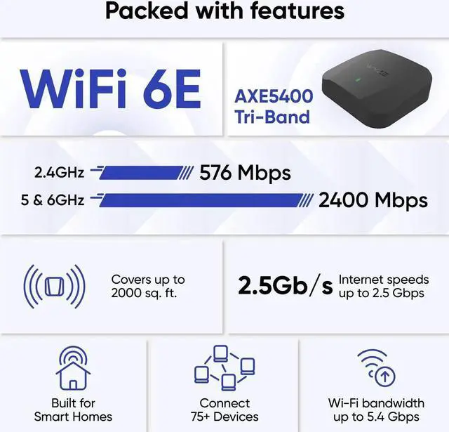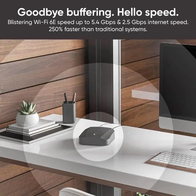 Wyze Mesh Router Pro brings you the absolute best in home Wi-Fi for a fraction of the cost. Experience the blazing fast, never-buffer-again, 2.5G bps speeds of Tri-Band Wi-Fi 6E. Mesh Technology allows your network to expand seamlessly, without the need for 3rd party extenders or boosters. As you move throughout your home, the Wyze Mesh Router Pro network seamlessly connects you to the nearest router to your device, never dropping a FaceTime call or pausing a video. Unlike older systems that use just one router to stretch coverage to your whole home, Wyze Mesh Router Pro uses mesh technology so you can expand your coverage with up to 10 routers to cover over 20, 000 sq.
