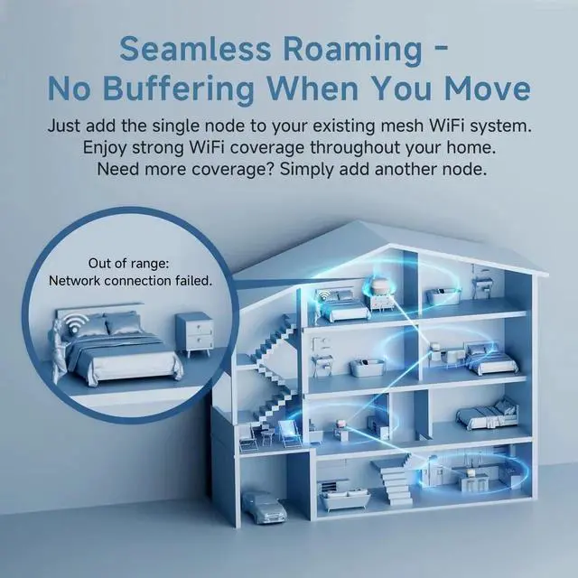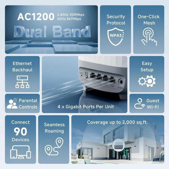 DBIT AC1200 Whole Home Mesh WiFi System, Covers up to 2, 000 Sq Ft, Dual-Band 1200Mbps Mesh Network for 90 Devices, Standalone Router or Mesh Add-On Node, 4 Gigabit Ports per Unit (D-MAC3, 1-Pack)