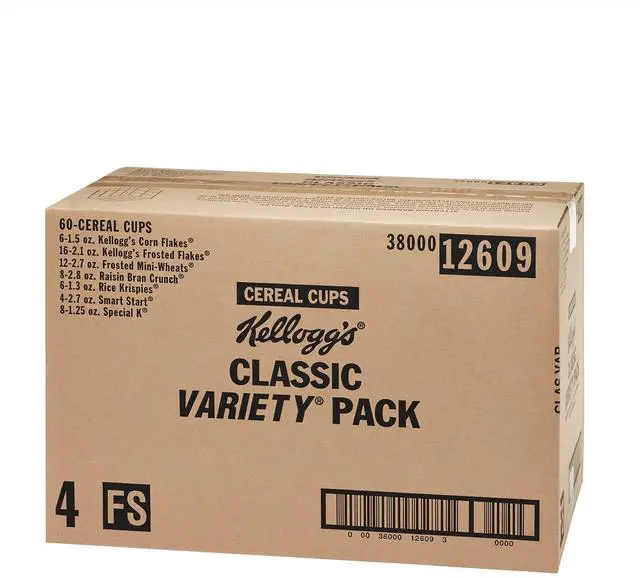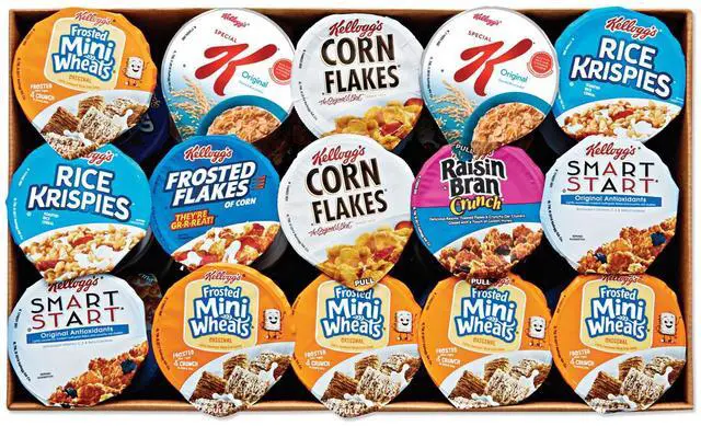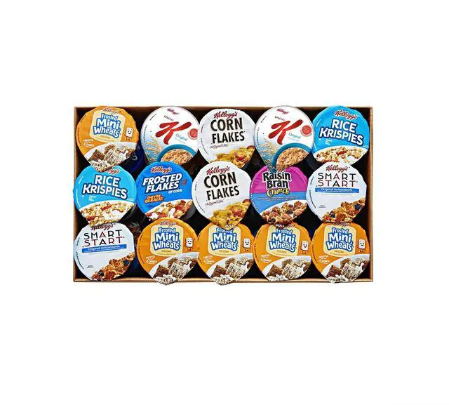 • Package Includes: (16) Frosted Flakes?; (12) Frosted Mini Wheats?; (8) Raisin Bran? Crunch; (8) Smart Start? Original Antioxidant; (8) Special K? Original; (6) Corn Flakes; (6) Rice Crispies?
