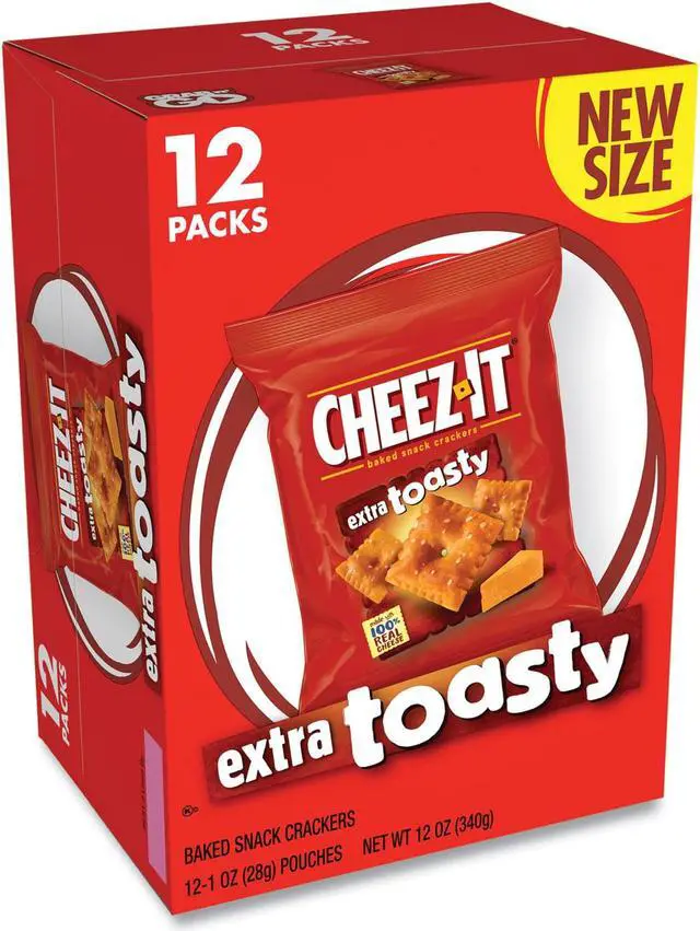 Offer employees, students, or family members a fun and quick snack. Made with real cheese for a delicious and authentic flavor. Come in individual bags for easy on-the-go snacking. Food Type: Crackers; Flavor: Extra Toasty Cheese; Capacity (Weight): 1 oz; Sugar Free: No.