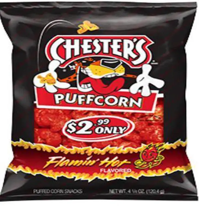Chester's Puffcorn Puffed Corn Snacks Flamin' Hot Flavored 4 1/4 Oz x 12 Big Bags!