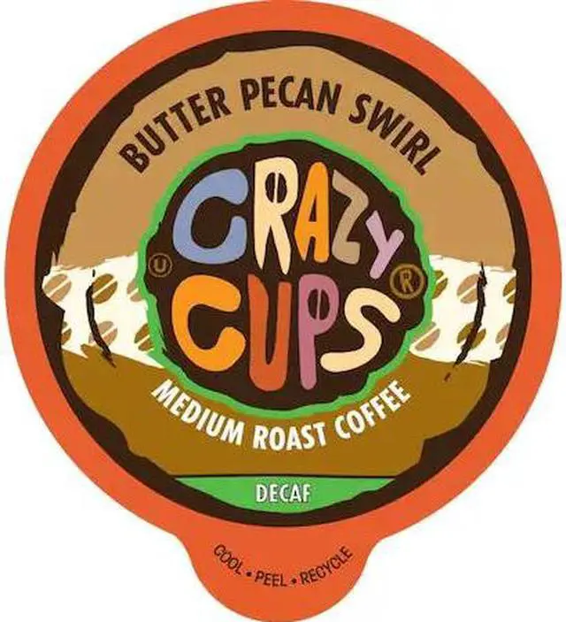 Crazy Cups Flavored Single-Serve Coffee for Keurig K-Cups Machines, Decaf Butter Pecan Swirl, 22 Pods per Box