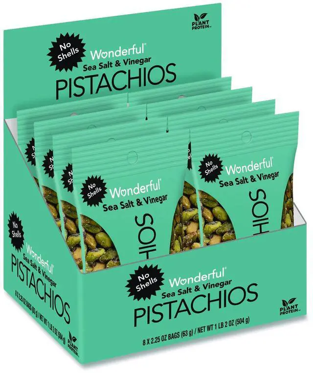 Wonderful No Shells Pistachios Sea Salt and Vinegar 2.25 oz Bag 8/Box PAR70033