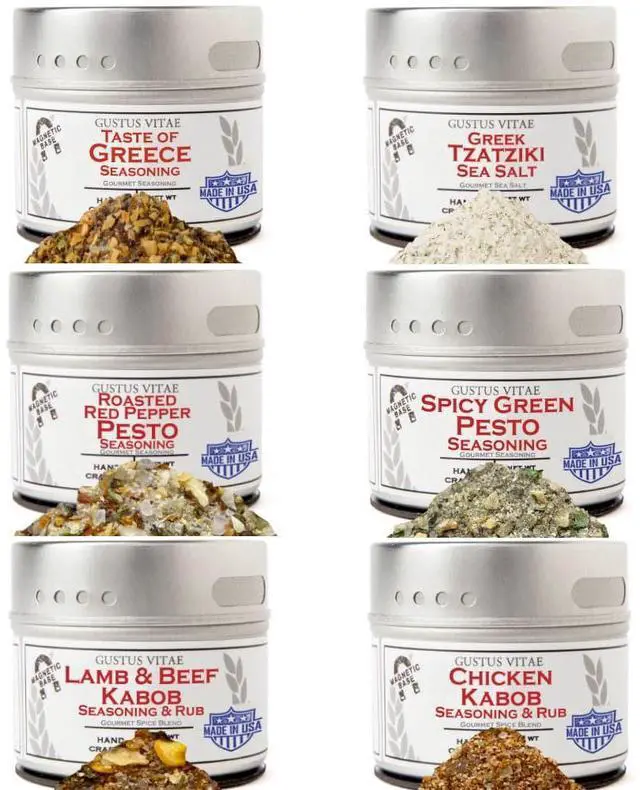 The Greek Islands are as close as your kitchen with this gourmet collection of small batch crafted seasonings, each one a unique homage to the many flavors of the Grecian coasts. Made by hand in the USA with sustainably sourced, ultra premium all-natural ingredients, each of these 6 unique spice blends faithfully honors distinct elements of Greek cuisine, from Greece's aqua blue seas to inspired takes on classics like Lamb Kabobs.
