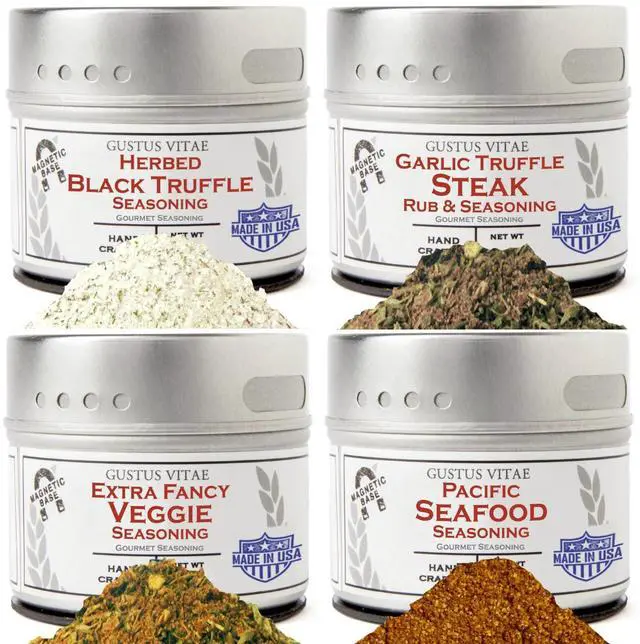 While truffle season may be fleeting, we've captured the flavors of the most wonderful time of the year with this luxurious 4 pack, featuring 2 products made with all natural Italian black winter (melanosporum) truffles and 2 of our favorite gourmet go-to's: Extra Fancy Veggie Seasoning and Pacific Seafood Seasoning. This thoughtful collection punches way above its weight in the kitchen, and is all you need for elevating weekday staples and weekend treats alike. Try the herbed truffle to make the best homemade pasta sauce you've tasted, take roasted veggies and baked potatoes to the next level with extra fancy veggie, and - you knew where this was going - cover everything with the impossibly rich flavor of truffle with Garlic Truffle Steak. Don't forget all your favorite seafood dish's new best friend: Pacific Seafood Seasoning. Life is short and sometimes hard - treat yourself or a loved one to the taste of luxury and make mealtime a celebration.