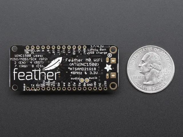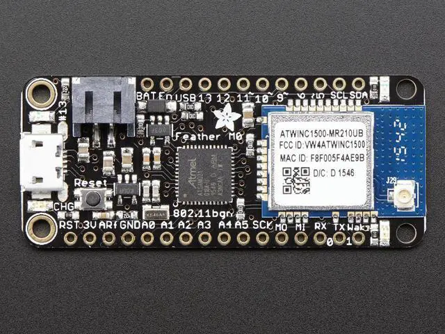 Key Features: A highly-capable Cortex M0+ processor with ton more I/O pins, lots of 12-bit ADCs, a 10-bit DAC, 6 total SERCOMs that can each do SPI, I2C or UART (3 are used by the existing interfaces, leaving you 3), plenty of timers, PWMs, DMA, native USB, and more The ATWINC has much lower power usage, about 12mA for the WINC & 10mA for the ATSAMD21 with auto-power management on for the WiFi and no power management for the ARM. Stream more reliably (less ' bursty' ) with the ATWINC. Feather is the new development board from Adafruit, and like its namesake it is thin, light, and lets you fly! We designed Feather to be a new standard for portable microcontroller cores. This is the Adafruit Feather M0 WiFi w/ATWINC1500 - Adafruit' s take on an ' all-in-one' Arduino-compatible + high speed, reliable WiFi with built in USB and battery charging. Its an Adafruit Feather M0 with a WiFi module, ready to rock! This module works with 802.11 b, g, or n networks & supports WEP, WPA and WPA2 encryption.